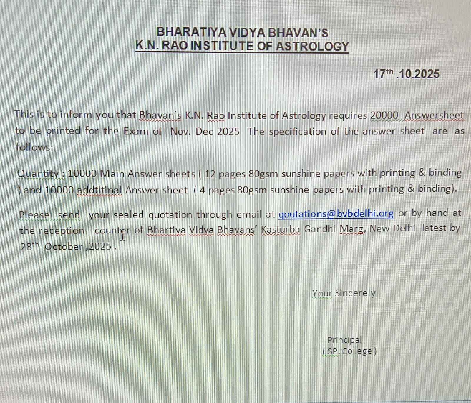 - Quotations for printing of Answer Sheets NEW